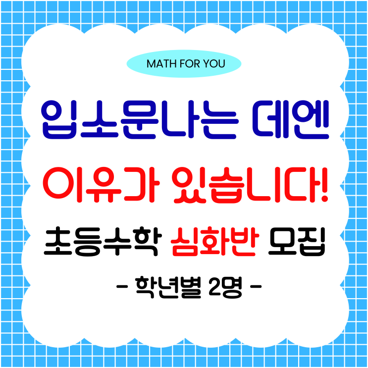 이젠 초등수학도 매쓰포유! 초등수학 심화반모집 장검무거동초등수학학원