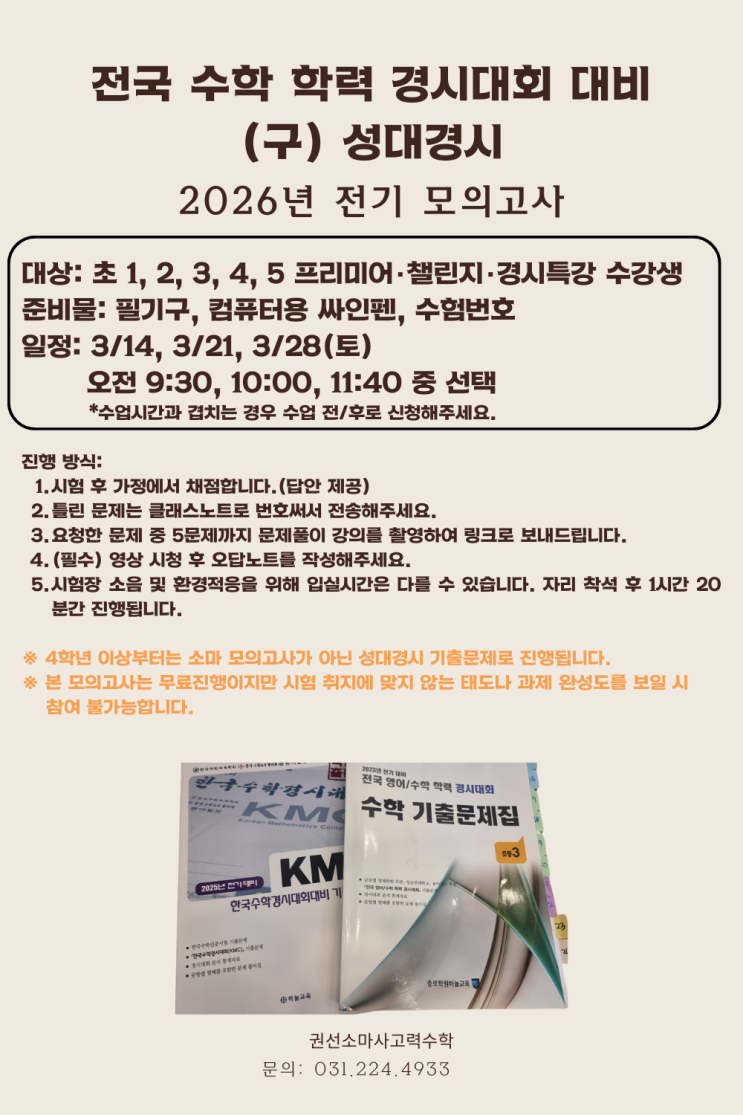 이번에도 2회에 걸쳐 8명의 학생들이 수상 했습니다. 이번 경시대회는 전년도 전 범위에서 출제 되어, 난이도가 쉽지 않았음에도 많은 학생들이 수상을 하였습니다 ^^ 올 한해도 학생들의 실력 향상을 위해 열심히 가르치겠습니다 !^^ <img src="https://blogthumb.pstatic.net/MjAyNjAzMDdfMyAg/MDAxNzcyODU0MDQ1Mzg5.M83TXvAVLI5ujwB_ZI6-NS431JmBUtrvsiF_SANXasUg.dUsQtbHl_sKikZH6D4ysjnTSGTxDnN0Ypf8ZGX6WRDUg.PNG/collage11.png?type=s3" />