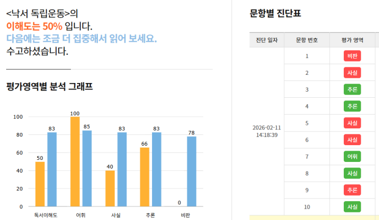 독해력이 약한 아이들을 보면 비슷한 습관이 있다. 책을 안 읽어서가 아니다. 지문을 못 읽어서도 아니다. 문제를 읽는 방식이 다르다. 1️⃣ 끝까지 읽지 않는 습관 독해가 약한 아이들은 문장을 끝까지 읽지 않는 경우가 많다. 앞부분을 보고 대충 의미를 짐작한다. 그래서 문장 뒤에 있는 조건을 놓치는 일이 많다. 2️⃣ 단어를 정확히 보지 않는 습관 독해 문제는 단어 하나로 답이 바뀌는 경우가 많다. 하지만 많은 아이들이 단어를 정확히 보지 않는다. 비슷한 의미로 생각하고 느낌으로 이해하고 그냥 넘어간다. 이 습관이 쌓이면 독해력이 흔들린다. 3️⃣ 지문 구조를 보지 않는 습관 독해는 한 문장만 보는 공부가 아니다. 앞 문장 뒤....... <img src="https://blogthumb.pstatic.net/MjAyNjAzMTFfMTQ4/MDAxNzczMTU1MzUzNDQx.TwwSVpngy4n2stMMpDsjqj0calU108dIEGdzM1dyitYg.5YRU209nOwL8zDovqI1pZO1v1Art3ATuECNLf3sX-jYg.JPEG/KakaoTalk_20251203_192840413_02.jpg?type=s3" />