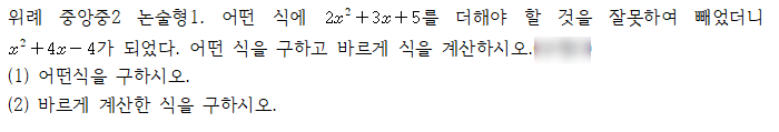 안녕하세요. 위례 로드맵 수학학원입니다. 벌써 2026년 첫 중간고사가 다가오고 있습니다. 오늘은 다가오는 2026년 1학기 중간고사를 완벽하게 대비하기 위해 작년(2025년) 위례 중앙중학교 2학년 수학 중간고사 출제 경향을 분석해 보겠습니다. 위례 중앙중학교의 중간고사 시험은 총 23개의 객관식 문제와 2개의 논술형 문제로 시험이 구성되었습니다. 중간고사 시험 범위는 유리수와 순환소수, 식의 계산, 일차부등식까지였습니다. 2025년 중앙중학교 중간고사 수학 난이도는 중상 정도로 기본문제와 함께 활용문제가 많이 출제되었습니다. 성공적인 2026년 중간고사 대비를 위해 단원별 주요 출제 포인트를 정리해 드립니다. 유리수와 순환소....... <img src="https://blogthumb.pstatic.net/MjAyNTA1MDFfMTM4/MDAxNzQ2MDgwMzQ2Mzcy._LjAisIhLdDTC9gXB-kwRUYUSXUNuFMqyYoB05CXrgIg.BAsOAH785eSWTdf5cygLYOJBGqtYqSa6zVlgKhxcAmkg.PNG/image.png?type=s3" />