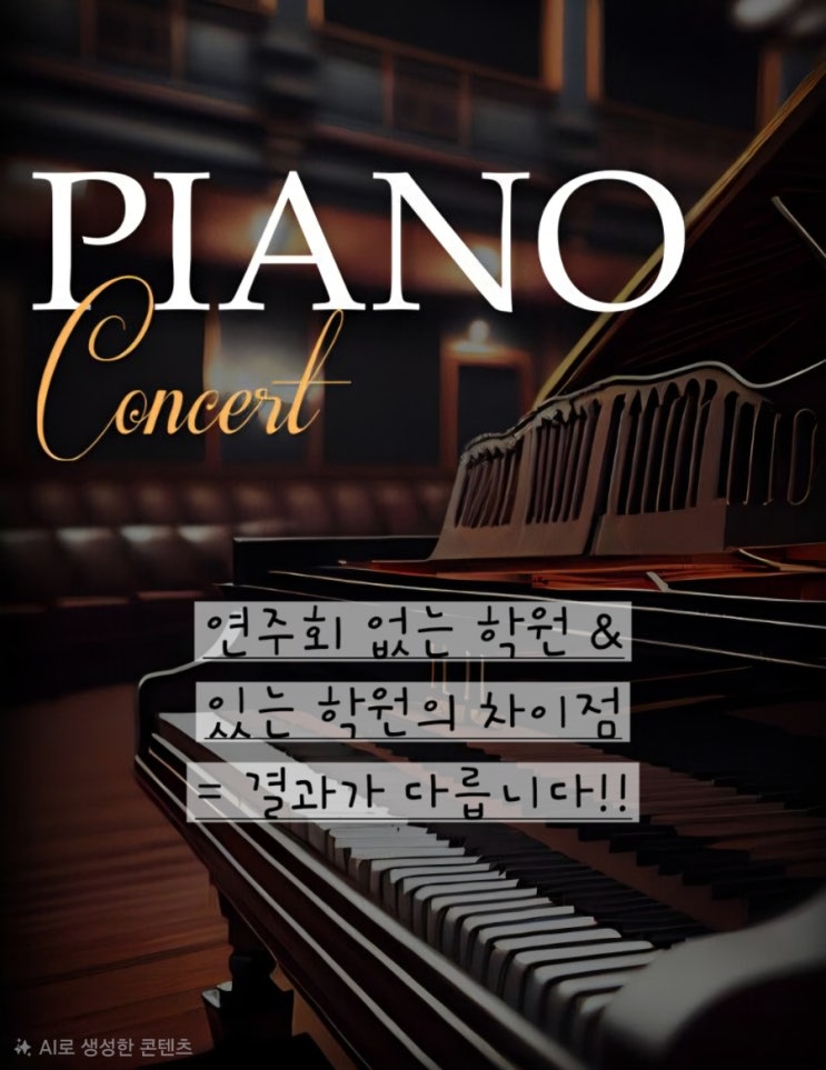 연주회를 하는 음악학원의 진짜 강점 피아노 학원을 선택할 때 많은 부모님들이 고민하십니다. “우리 아이가 끝까지 배울 수 있을까?” “실력이 제대로 늘고 있는 걸까?” 이 질문에 대한 가장 확실한 답은 연주회를 하는 학원인지를 보면 알 수 있습니다. 1️⃣목표가 있는 연습은 결과가 다릅니다. 연주회가 있는 아이들은 단순히 ‘숙제처럼 연습’하지 않습니다. ✔ 무대에 서기 위한 목표 ✔ 완성된 곡을 들려주고 싶은 마음 ✔ 스스로 해내고 싶은 성취감 이 모든 것이 모여 연습의 집중도와 완성도를 완전히 바꿉니다. 연주회는 단순한 이벤트가 아니라 아이의 실력을 끌어올리는 가장 강력한 장치입니다. 2️⃣“끝까지 해내는 힘....... <img src="https://blogthumb.pstatic.net/MjAyNjAzMjZfMTI4/MDAxNzc0NDUyOTI1MDE1.iMY4eqAYdormZpFjJlOJlEUdbjQfnW5vn_gvJ68mUjcg.Yza5eCTF4qHmY-n_SCn4VV7KPDZIznYrgtNQ_VeQIsgg.JPEG/900%A3%DF0f4d0cb266b7b6e2c7395ed4d99bcef8%A3%A81%A3%A9.jpg?type=s3" />