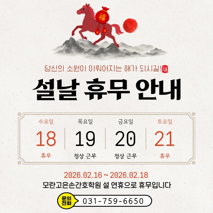 [국비지원 간호조무사] 설 휴무 안내 [성남간호학원_분당간호조무사학원]
