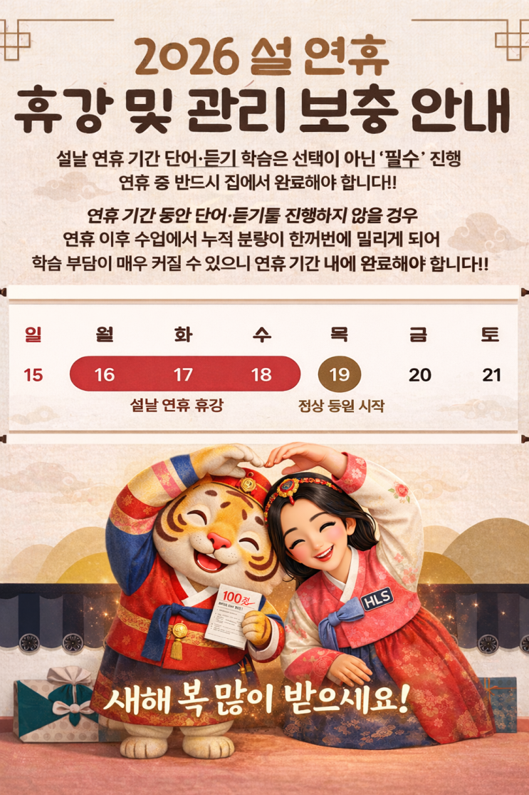 2026 설 연휴! 쉬어도 HLS 어학원 학생들의 실력은 멈추지 않습니다.