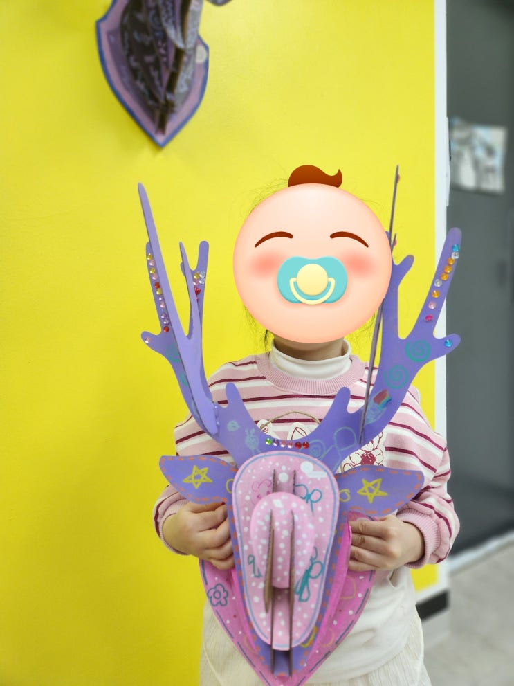안녕하세요. 단대동 아트밍입니다. 우리들의 특별한 헌팅트로피 만들기 입체조형 수업 이야기 이번 시간에는 아이들과 함께 입체 헌팅트로피(사슴 장식) 만들기를 진행했어요. 평면이 아닌 입체로 세워지는 구조 작업이라 조립 과정부터 아이들의 눈이 반짝반짝✨ 보라빛 감성 사슴 보라색을 메인으로 선택한 친구는 뿔에 알록달록 보석을 콕콕 붙이며 “반짝반짝 마법 사슴이에요!” 라고 이야기했어요 소용돌이 무늬, 작은 점, 별 장식까지 섬세하게 채워 넣으며 자기만의 이야기가 담긴 사슴을 완성했답니다. 표정까지 장난기 가득해서 사슴이랑 닮은 느낌이었어요 따뜻한 가을빛 사슴 차분한 오렌지 브라운 톤을 선택한....... <img src="https://blogthumb.pstatic.net/MjAyNjAyMTRfMTAx/MDAxNzcxMDQxMDUxNDQw.uuh63286YI3eOSf2ym-VQRlaMfGh3nB2RXiYIRo3OHAg.Lru-NnKzIqlVY6KEIF__9sg2HmWL6dKMWUcESG9P1tkg.JPEG/20260211_173412.jpg?type=s3" />