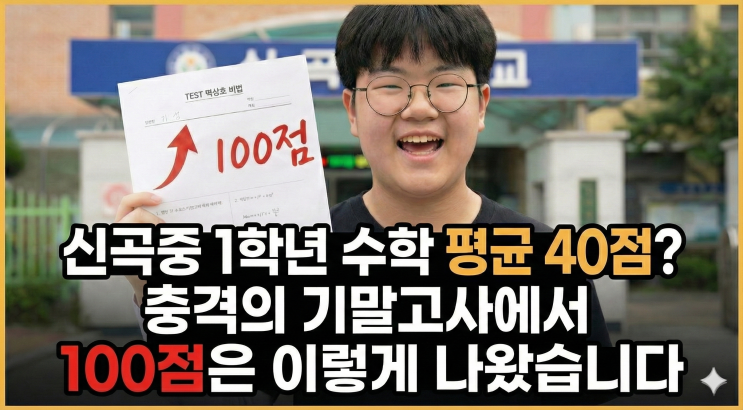 안녕하세요! 열정적인 수학교육을 이어가고 있는 신곡동 렘마수학입니다. 신곡중 1학년의 수학시험이 끝나고 학부모님들 전화기에 불이 났습니다. 가채점 점수를 받아보시고 적잖이 충격받으셨을 겁니다. "우리 애가 초등학교 때는 곧잘 했는데..." "평소 때는 이 점수가 아니었는데..." 놀라지 마세요. 어머님 아이만 그런 게 아닙니다. 팩트부터 체크하고 넘어가겠습니다. 평균 70점 → 40점 초반대 이번 시험에서 무슨 일이? 원래 신곡중학교 시험은 솔직히 말해 할 만한 수준이었습니다. 모든 학년의 보통 평균는 70점(±1~2) 언저리는 나오고 90점 넘는 학생들도 수두룩했을 뿐 아니라 100점 또한 다수였죠. 그런데 이번....... <img src="https://blogthumb.pstatic.net/MjAyNjAxMTFfMiAg/MDAxNzY4MTIxMjA2Nzgx.j-xxPhCdKtkg1iljzNFlp4vJc-H4hoIQGx2y0D4F374g.9kTcgNg0N-jamPHi9PEqhK0b_gxSEUF-H6XC9FgpTgcg.PNG/Gemini_Generated_Image_hzasmdhzasmdhzas.png?type=s3" />