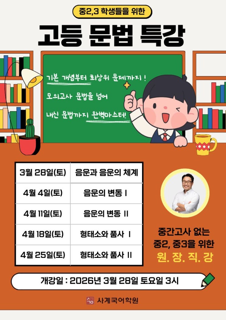 #사계국어 #평촌사계국어학원 #국어전문학원 #입시전문학원 #내신전문학원 #중등국어문법 #중등국어 #문법특강 #중2 #중3 <img src="https://blogthumb.pstatic.net/MjAyNjAzMTNfOTYg/MDAxNzczMzg2NTI3NTYw.6ExViSOcgC2MXGgL6_l51ralvGC-kd_cqMVSY4IdIg0g.Vzdu8SQu3JcbahK64lyCvZZ4ZLe8GvvzWv3pEvhi7MYg.JPEG/KakaoTalk_20260313_161131938.jpg?type=s3" />