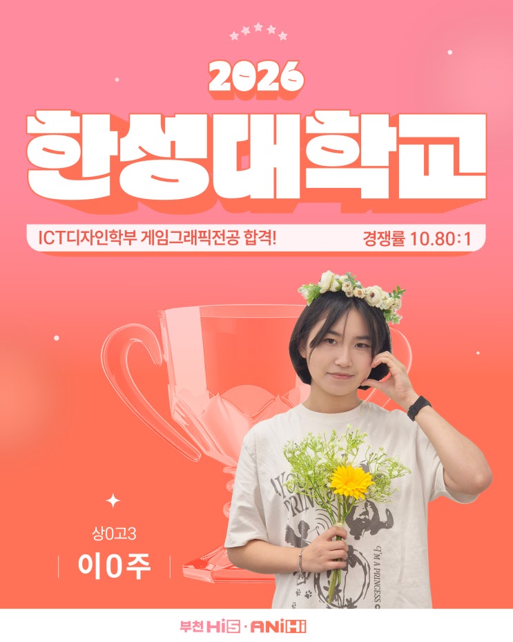 안녕하세요. 부천 애니하이 만화학원입니다! 오늘은 학원에 반가운 소식이 있어 인사드립니다! 그 소식은 이O주 학생의 한성대학교 ICT 디자인학부 게임 그래픽 전공 합격 소식입니다! 연습하던 시간이 쌓여 만들어진 결과이기에 학원에서도 뜻깊은 합격 소식입니다~ 그럼 이제 학생이 어떻게 준비했는지 함께 이O주 학생의 생생한 인터뷰를 함께 보시죠! 이O주 학생의 생생한 인터뷰 어떠셨나요? 입시는 결과로만 보이지만 그 안에는 수많은 연습과 고민이 담겨 있습니다. 저희 부천 애니하이 만화학원에서는 학생들의 가능성을 믿고 끝가지 함께 하겠습니다! 다시 한번 이O주 학생의 합격을 진심으로 축하하며, 앞으로 펼쳐질 새로운 여정도 응....... <img src="https://blogthumb.pstatic.net/MjAyNjAxMjZfODkg/MDAxNzY5Mzk1NTE0ODQ0.IHigqt4NBqcuX2j8G5KVXBUx6T2Jv4Ci-ok0BFSbhAUg.0MsqR_7XokEpEG9AlH8p28i--rvzQhUKLMW2U_hcFS4g.JPEG/KakaoTalk_20260115_135951019_07.jpg?type=s3" />