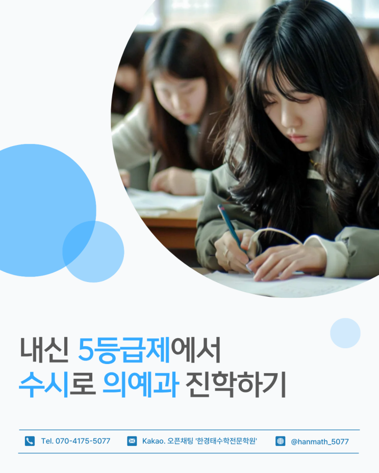 안녕하세요 광명시 수학 강자 한경태 수학전문학원입니다. 의예과는 이과 최상위권 학생들이 가장 많이 목표로 하는 모집단위입니다. 그만큼 경쟁이 치열하고, 준비 과정 역시 단순하지 않습니다. 여기에 더해 2027학년도 의대 증원, 지역의사제 도입, 고교학점제와 내신 5등급제 전환까지 겹치면서 의예과 입시는 과거와 완전히 다른 환경에 놓이게 되었습니다. 특히 내신 평가 방식이 5등급 상대평가로 전환되면서 의예과 수시 준비의 기준점 자체가 달라졌습니다. 내신 5등급제, 의예과에서는 ‘제로베이스’입니다 내신 5등급제가 적용되는 2028학년도 이후를 기준으로 보면, 의예과를 지원하는 학생 대부분은 일반고 기준 1.00등급을 확보하....... <img src="https://blogthumb.pstatic.net/MjAyNjAyMjFfMTg3/MDAxNzcxNjQ5ODIxNTQz.hUp8VlG623tf2tRJt7UH-y6WR2P1YU2DuaywpBjxi3cg.aqGimNOCyDXmMdiqOh6WlMv-XNnr-e2jGAptbdnqgBkg.PNG/%BC%AD%BF%AC%B0%ED_%C0%D4%BD%C3_%BA%AF%C8%AD_%282%29.png?type=s3" />