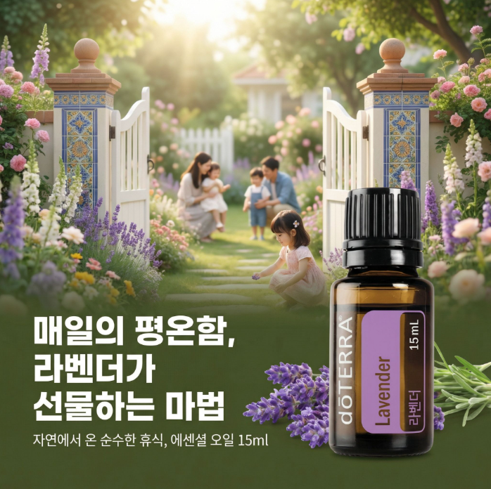 라벤더 향은 뇌의 변연계 (감정 중추)에 직접 작용하여 긴장을 풀고 수면 리듬을 안정시킵니다 Lavender 학명 : Lavendula angustifolia 과명 : 꿀풀과 Lamiaceae 정유 추출 부분 : 꽃의 핀 선단부 잎 정유 추출 방법 : 수증기 증류법 주성분:리날릴,라반듈릴아세테이트 (45%),리날룰,제라니올(36%) 원산지 : 프랑스, 영국, 불가리아 노트 : 미들 노트 도테라 라벤더 식물의 특성 라벤더(Lavandula angustifolia) 꽃을 증기 증류법으로 추출한 100% 순수 에센셜 오일로 도테라의 CPTG®(순도 테스트) 기준을 통과한 고품질의 오일로써 몸과 마음을 진정·안정·회복시키는 데 가장 널리 사용되는 기본 오일입니다 아로마의 대표로 인....... <img src="https://blogthumb.pstatic.net/MjAyNjAzMDFfMTcg/MDAxNzcyMzc1MzAzNjUy.XBf6J-_d9L2e2d0KuEqVLIqukUY6uQXgFRVAS43NgOQg.At4ti65wsi7J0wvkZXAsXoqDVmhoCrppJvzIVAGEvJog.PNG/%B5%B5%C5%D7%B6%F3%B6%F3%BA%A5%B4%F5%BF%C0%C0%CF7.png?type=s3" />