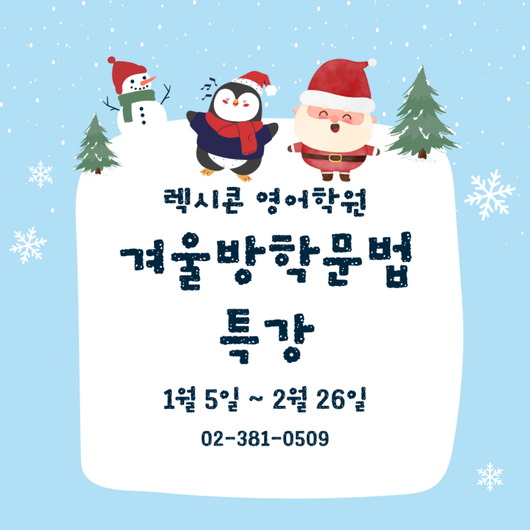 ❄️ 2026 렉시콘 영어학원 겨울방학 문법 완성 특강 안내! 안녕하세요! 꿈을 향해 나아가는 학생들의 든든한 학습 파트너, 렉시콘 영어학원입니다. 2026년 겨울방학, 짧지만 가장 알찬 시간을 투자하여 초,중등 영어의 기초를 탄탄하게 다질 절호의 기회를 놓치지 마세요! 이번 특강은 초등 및 중학교 내신 필수 문법 개념을 완벽하게 정리하고, 흔들림 없는 영어 실력의 기반을 마련할 수 있도록 구성했습니다. 왜 렉시콘 문법 특강을 들어야 할까요? ⚡️ 필수 개념 집중 마스터: 초,중학교 내신 및 고등 영어 학습에 반드시 필요한 핵심 문법 개념만을 엄선하여 단기간에 체계적으로 완성합니다. 명쾌하고 쉬운 설명: 어렵게....... <img src="https://blogthumb.pstatic.net/MjAyNTEyMDRfMjk2/MDAxNzY0ODMxNTQyNzM1.B_cdEMrlHJNCvs70xHhm82ZqsKhwkgYW8fiem2GTQ3Eg.iif76rjsCjIFCa4z3O1n6yiAyZEE9i3LJ59ITA8BeO0g.PNG/%B0%DC%BF%EF%B9%E6%C7%D0_%B9%AE%B9%FD_%C6%AF%B0%AD.png?type=s3" />