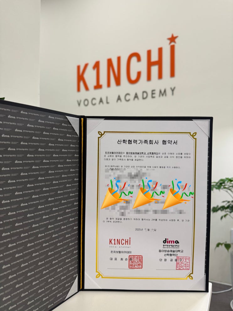 #고양시보컬#일산보컬#화정보컬#행신보컬#홍대보컬 #동아방송예술대학교 #MOU #기술협약 안녕하세요! 고양시 덕양구 행신동 학원 킨치보컬아카데미 입니다! 최고의 시설과 최고의 교육을 통해 반드시 변화, 성장, 발전을 이룰 수 있도록 합니다! 킨치보컬아카데미가 동아방송예술대학교와 산학협력가족회사가 되었습니다 학생들의 실질적인 현장 경험 제공과 트레이닝 시스템까지 제공합니다‼️ 앞으로 학생들에게 더 많은 정보와 기회 그리고 경험을 줄 수 있게되었습니다 ❇️킨치보컬아카데미는 “발전”과 "변화" 그리고 "성장"을 목표로 하고 "올바른 인성"을 가장 중요하게 생각합니다. ❇️....... <img src="https://blogthumb.pstatic.net/MjAyNjAyMDNfMSAg/MDAxNzcwMTA2Mzk4MzEx.B6lGjNstKDA7LvLI5YJPQsztvzvqAwO7SAf4zuN2eU4g.9g8LKwwYXxcX5kBwk-R5TdHi_wcCA9s50mWpQ58jqscg.JPEG/KICHI_DIMA_MOU.jpg?type=s3" />