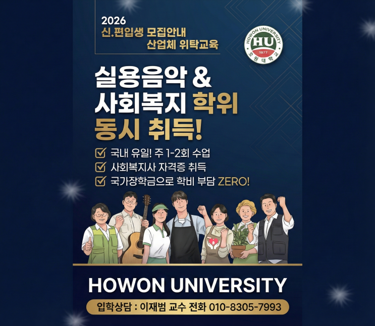 #행신동실용음악학원 의 명문 #샤인실용음악학원의 이재범원장님께서 겸임교수님으로 재직중이신 호원대학교 실용음악과에서 신편입생을 모집한답니다. 산업체위탁과정으로 덕양캠퍼스에서 주1회 수업으로 진행을 하며 2개의 학위와 사회복지사 2급 자격이 주어지며 다양한 장학혜택으로 수업료 부담없이 학업을 이어가실 수 있답니다. 궁금하신점은 언제든지 상담주세요~ <img src="https://blogthumb.pstatic.net/MjAyNjAxMDhfMTk2/MDAxNzY3ODUxMzQzODUx.ZJ5nYyXuAVWiXHRGPSj2be5smFZ0T9hd6Yz6rUeBg3gg.4Z06_7-szhAWsw_tm_rLYd4VRkwuaq7hCsb94kAhgEEg.PNG/%C8%A3%BF%F8%B4%EB%C0%D4%BD%C3%C6%F7%BD%BA%C5%CD2026-1.png?type=s3" />