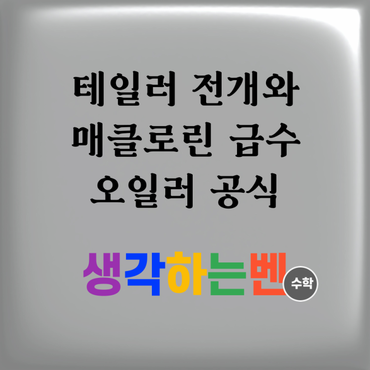 덕소 수학학원 생각하는벤 수학에서 함수는 매우 복잡한 형태를 띠기도 하지만, 특정 점 근처에서는 단순한 다항식으로 근사할 수 있습니다. 이러한 근사 개념은 곡선도 가까이서 보면 직선처럼 보인다는 사실에서 출발합니다. 실제로 우리는 작은 값 근사를 통해 이를 자주 활용합니다. 예를 들어 라는 근사식은 극한 문제를 직관적으로 이해하는 데 큰 도움을 줍니다. 이처럼 근사는 함수의 성질을 단순화하여 이해와 계산을 돕는 중요한 도구입니다. 【테일러 전개와 매클로린 급수】 ▶ 근사의 출발점 ▶ 테일러 전개(테일러 급수) ▶ 매클로린 급수 ▶ 오일러 공식 유도 ▶ 고등학교 교육과정에서의 활용 【근사의 출발점】 근사의 가장 기....... <img src="https://blogthumb.pstatic.net/MjAyNjAyMjBfMTE1/MDAxNzcxNTc1NzY4NjY1.ElfF5lqsoETvNw3xI7dYhPFIYtOaHlyC196Qn0Lh2GMg.wU3vURJvzk1hmQGCeEZuIBsYtdxFc6lWQcEqNymtQ9kg.PNG/%C1%A6%B8%F1%C0%BB-%C0%D4%B7%C2%C7%D8%C1%D6%BC%BC%BF%E4__%BA%B9%BB%E7%BA%BB-001_%2831%29.png?type=s3" />