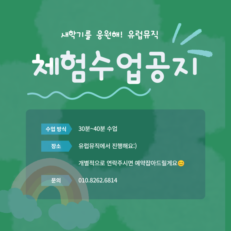 오는길이 즐거운 유럽뮤직입니다! 체험수업 진행합니다~!ㅎㅎㅎ 문의주시면 안내드릴게요. -------------------------------------------------------------- 상담문의 : 010.8262.6814 롯데마트 대각선맞은편 서해아파트상가 205호 ---------------------------------------------------------------- #해피아이유치원 #등밭유치원 #금모래초병설유치원 #은계초병설유치원 #시흥아름유치원 #대야동5세피아노 #대야동6세피아노 #대야동7세피아노 #대야동바이올린학원 #대야동음악학원 #대야동플루트개인레슨 #대야동플룻학원 #대야동우쿨렐레학원 #대야동음악학원연주회 #대야동성인음악하구언 #대야동성인피아노 #대야동성인바이올린 #은행동6세....... <img src="https://blogthumb.pstatic.net/MjAyNjAzMDZfMTk4/MDAxNzcyNzk3NTMzNDg0.zdF6RBTbrD_PGnIzrY2Eh0WMOs5m9zEOV3I9LDuZmtsg.QIlUWXM6836kSmnBCaKumExwu4KFA8Yd8FlvqQkTHl4g.PNG/KakaoTalk_20260306_204127606.png?type=s3" />