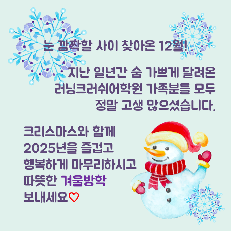 러닝크러쉬어학원 ★ 2025년 겨울방학 안내