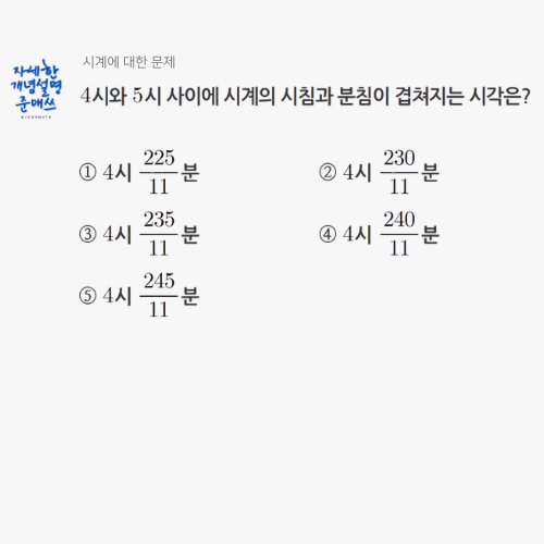 시계의 시침과 분침이 겹쳐지는 시각을 구하는 일차방정식 심화문제