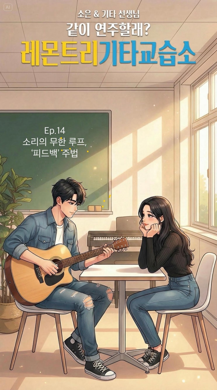 델리스파이스의 '고백'을 연습하던 중, 악보에서 ‘피드백’이라는 낯선 용어를 본 영준. 영준은 이 궁금증을 해결하기 위해 선생님을 찾아가는데... #웹툰 #음악웹툰 #기타웹툰 #레몬트리기타교습소 #일렉기타 #기타주법 #피드백 #Feedback #하울링 #Howling #델리스파이스 #고백 #기타초보 #기타연습 <img src="https://blogthumb.pstatic.net/MjAyNjAzMDJfMjAw/MDAxNzcyNDQ4MzU5NTE0.KnKtnU8WCbshyMAlUIQPRVDQEGV60a4L5swgXWWeiQIg.mTCIq8IHgxDN6AmDACuZEo-RXwYgVKqGKyLCVag3NYIg.JPEG/IMG%A3%DF2879.JPG?type=s3" />