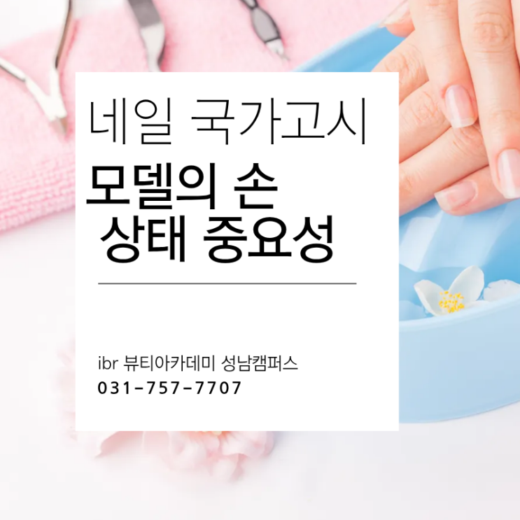 안녕하세요! 아이비알 뷰티아카데미 성남 캠퍼스 이영화 강사입니다~~!!! 네일 국가고시 준비하시는 분들 보면 보통 아트 연습이나 시간 맞추는 연습에 많이 집중하시는데요. 그런데 의외로 많이 놓치는 부분이 바로 모델 손 상태 체크입니다! 시험 당일에 막상 모델 손을 자세히 보니까 손톱이 너무 짧거나, 주변에 작은 상처가 있거나, 큐티클 상태가 좋지 않아서 당황하는 경우가 생각보다 꽤 있거든요. 네일 국가고시는 단순히 아트를 잘 하는 것만 보는 시험이 아니라 위생이나 시술 과정도 함께 평가되기 때문에 모델 손 상태가 좋지 않으면 시술이 불편해지거나 감점으로 이어질 수도 있습니다. 그래서 시험 준비하실 때는 연습만큼....... <img src="https://blogthumb.pstatic.net/MjAyNjAzMDlfMTAx/MDAxNzczMDI2NDA0NzMw.Y3tv8LviI-NNtmkc09Qd2XE8QAOl7bRaRBRePNzPQI4g._sUQHr9nzf09XYwTPEu0sauMWQMb2zl_m-C_UZ4yy54g.PNG/%C1%A6%B8%F1%C0%BB_%C0%D4%B7%C2%C7%D8%C1%D6%BC%BC%BF%E4._%2810%29.png?type=s3" />