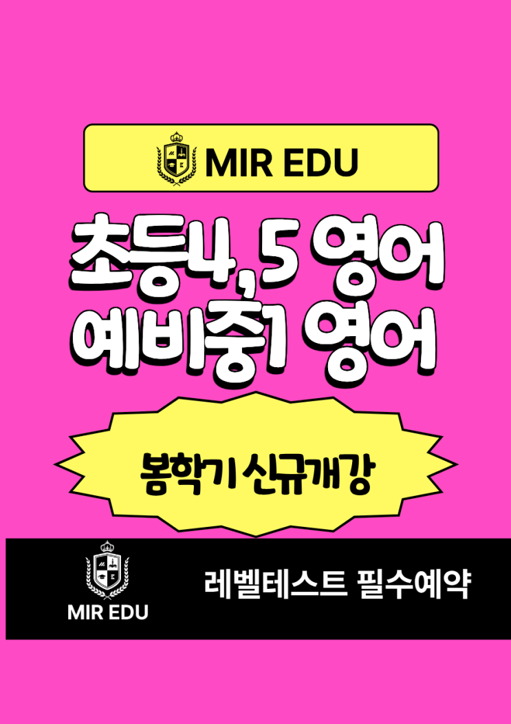 [미르에듀] 부천 상동 초등영어학원 | 예비중1 영어 완성, 봄학기 신규 개강
