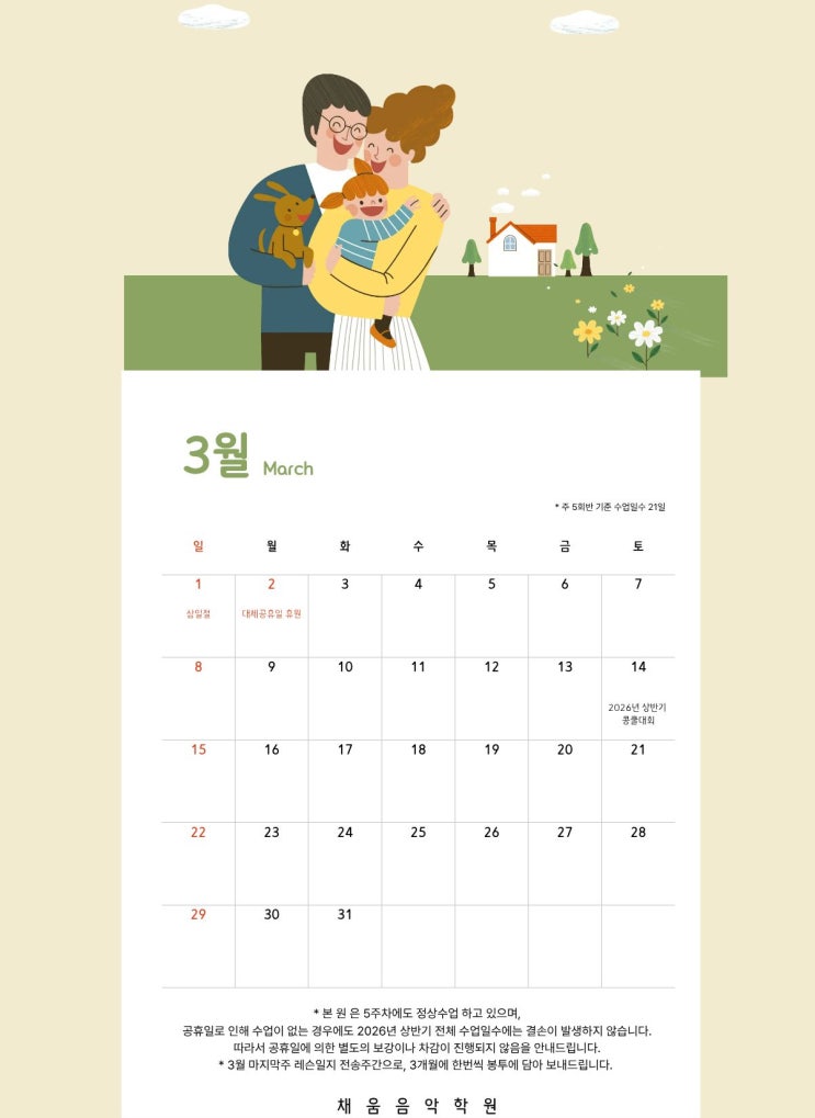 안녕하세요 안산 채움 음악 학원입니다 ⠀ ෆ 40평대 넓고 쾌적한 시설 ෆ 그랜드피아노2대, 투피아노실 등 총 11대의 업라이트 피아노 ෆ 서울권 음악대학원 석사출신 원장님의 1:1 레슨 ෆ 시간정원제 수업 ෆ 분기별 다양한 예술특강 ෆ 매 달 마지막 주 영상촬영을 통한 연주력 향상 ෆ 매 시간 레슨일지 작성 정기적 학부모님께 공유 ෆ 매 년 정기연주회 및 콩쿨대회 참여 ෆ cctv, 등하원알림 완비 ෆ 유치부 & 초등부 & 중고등부 & 성인취미반 ❝ 학생들의 수업권 보장을 위해 방문상담은 예약제로 진행됩니다 ❞⠀ ⠀ T. 031-483-5210 M. 010-5018-2778⠀ ꯁ 음악으로 삶을 채우는 공간, 채움음악학원 ꯁ <img src="https://blogthumb.pstatic.net/MjAyNjAyMjVfMTkg/MDAxNzcxOTk2ODMwNTQ2.r9UWffYkxN0Q8tG__uCcrFiTJbpnoQxAVFd4aDktFtYg.754cdOwqLWGI95Ac9oYZo9w9mnHZ_JvF5nHDK0GPYh8g.JPEG/3%BF%F9_%BE%C8%B3%BB%B9%AE.jpg?type=s3" />