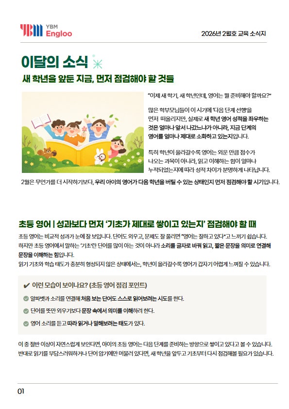[YBM 잉글루 2월 소식지]2026년 새 학기 영어 준비, 우리 아이 '진짜 실력' 확인하셨나요?