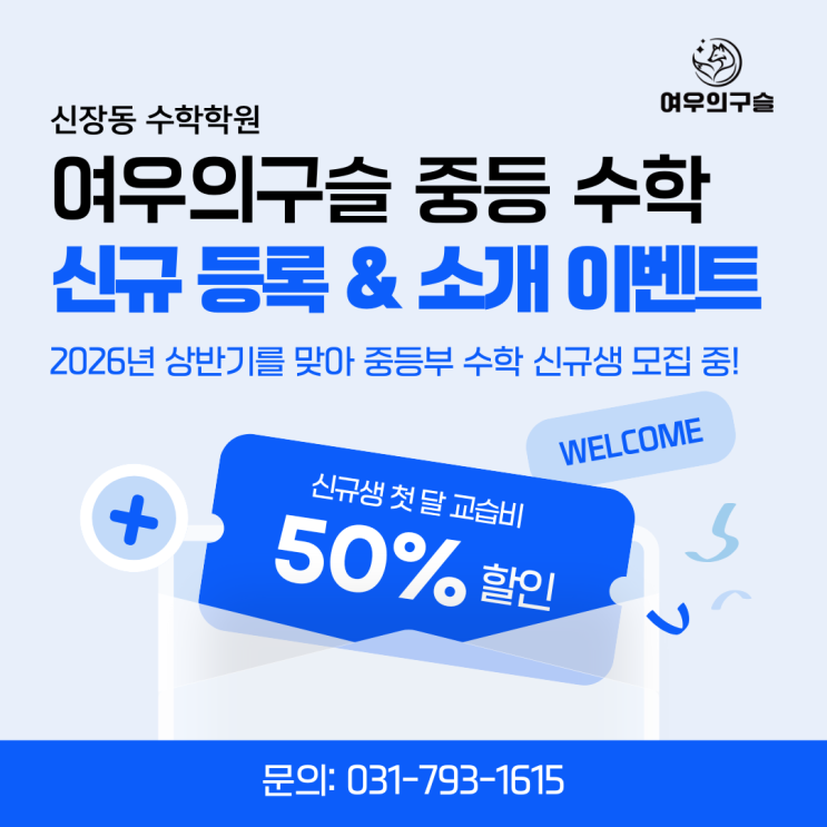 [신장동 수학학원] 여우의구슬, 2026 중등 수학 신규생 모집 이벤트 안내