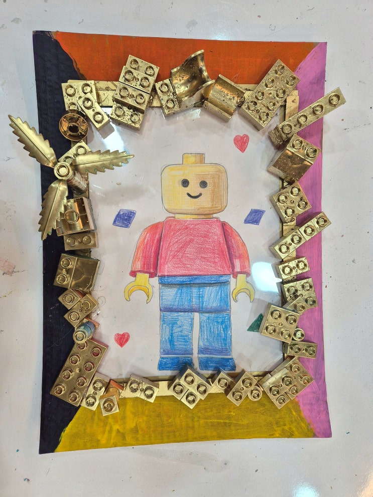 2026년 2월 남아, 여아들 모두의 취향을 맞추면 좋겠지만 모두의 취향을 맞출 수는 없기에 이번에는 남아 친구들을 위한 수업을 준비했어요. 레고로 액자 꾸미기 수업입니다 .^^ 짜잔~ 준비한 큰 레고를 종류별로 바구니에 담아 아이들에게 선택하게 하고 금색 테두리에만 붙이도록 알려주었어요. 시범을 보이기는 했는데 아이들이 생각보다 고민하며 꾸며주는데 많이 붙이기를 좋아하진 않더라고요. (저희 학원 친구들만의 특징일까요??) 그래도 흥미를 가지고 참여하는 앙증맞은 유치부 친구들입니다. 유치부 친구들은 대부분 흥미를 먼저 끌어줘야 수업 참여도가 높아요. 이번 수업은 레고를 보자마자 이번에 그려야지!! 하며 참여도가 높았습....... <img src="https://blogthumb.pstatic.net/MjAyNjAzMTVfMjgg/MDAxNzczNTQ4NDMwODg5.FJP97PhgMSStW3A1qXTc7xSr2HPnT87_X5P4mALNJpwg.CBfEs8-A5W6DhLzyuRMtuHECv8JQf4Y66uxJTKCnWh0g.JPEG/20260313_182949.jpg?type=s3" />