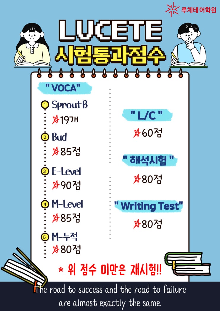 [영등포동 영어학원][루체테어학원 영등포캠퍼스] 시험 점수 기준 총정리! 시험 통과 점수 및 재시험 기준 안내♀️