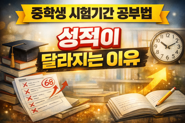 중학생 시험기간 공부법 시험 직전에 성적이 달라지는 이유 (올마이티잉글리쉬 EXAM CARE 시스템) 시험기간이 되면 많은 학부모님들이 이런 고민을 하십니다. “우리 아이 시험기간인데 공부를 제대로 하고 있는 걸까?” “학원은 다니는데 성적이 왜 그대로일까?” 실제로 많은 학생들이 시험기간에 공부를 하고는 있습니다. 하지만 문제는 공부를 하는 것과 시험 점수로 연결되는 공부는 다르다는 점입니다. 시험기간 성적이 안 오르는 이유 시험기간에 학생들을 보면 대부분 이런 패턴이 반복됩니다. ✔ 문제는 많이 풀지만 오답 정리를 하지 않는다 ✔ 공부 시간이 길지 않다 ✔ 혼자 공부하다가 집중력이 쉽게 무너진다 ✔ 시험 직전까지 학....... <img src="https://blogthumb.pstatic.net/MjAyNjAzMjhfMTc0/MDAxNzc0Njc3MjQ2OTgy.Nj0vZSlxCe0lFKpHDqveruS09cnTfYx3GcnSt15AU4wg.OjFm2B3j6wQpZP-9tAAaCuruPeSeh2x6tkS_NurxOzMg.PNG/ChatGPT_Image_2026%B3%E2_3%BF%F9_4%C0%CF_%BF%C0%C8%C4_04_00_31.png?type=s3" />