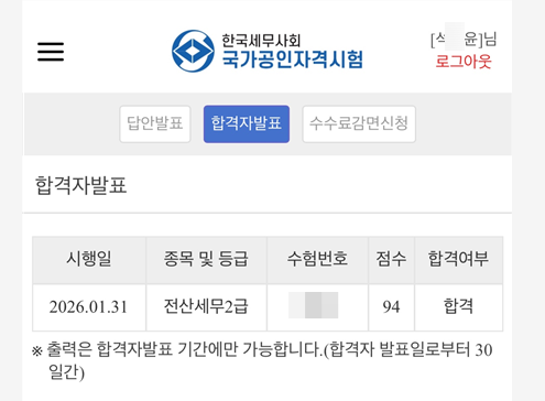 [26.02.26 전산회계 및 전산세무 합격자 발표]