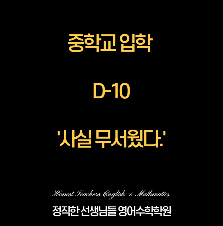 반갑습니다. 대구 신서동 영어학원 정직한 선생님들입니다. 오늘로 개학 D-10이 되는 날입니다. 어떤 학생은 설레는 마음을 가질 수도 어떤 학생은 약간은 긴장 될 수도 있겠습니다. 오늘은 대구 신서동 영어학원 정직한에서 현 중학교 2학년 되는 학생들과 '중학교 올라 갈 때 어땠어?'라는 주제로 상담한 내용을 바탕으로 각색한 소설을 소개 드릴까 합니다. 학생의 입장에서 중학교 입학을 맞이하는 마음이 어떤지 잘 알 수 있는 내용이니 가볍게 한 번 읽어 주시면 감사하겠습니다. :) 솔직히 말하면, 설레는 척했어요. 새 교복도 받았고, 새 가방도 샀고, 엄마는 계속 "중학교 가면 진짜 재밌을 거야" 했으니까 근데 밤....... <img src="https://blogthumb.pstatic.net/MjAyNjAyMTlfNzkg/MDAxNzcxNDkyNTE3MzMz.o8Pb8g3vpxrsCBWit2uWzG67u1yo4FzvdbFI4a6njiAg.JwZduDL-hyhCHq3QBCf2Y9WmJHsjClS6OX65Rz5yulkg.PNG/image.png?type=s3" />