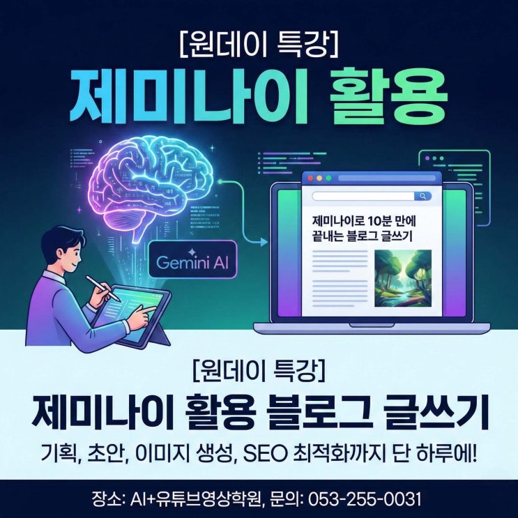 ✍️ 제미나이와 함께하는 블로그 글쓰기 원데이 강좌 ✨, 유튜브영상학원
