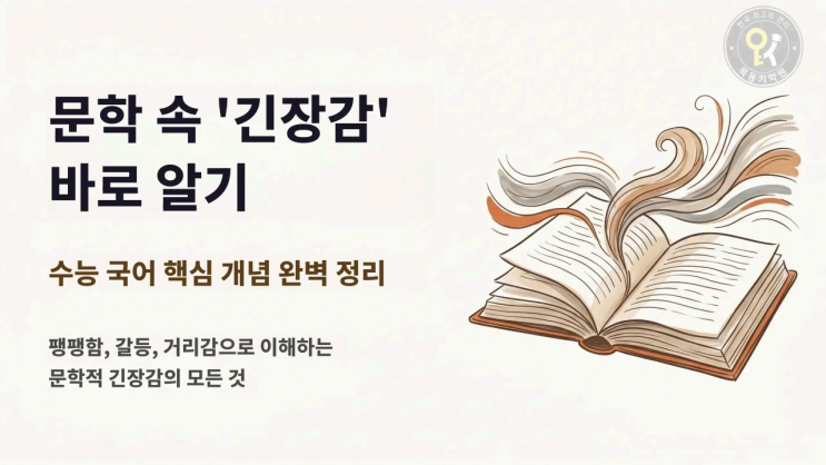 안녕하세요! 목동키국어학원입니다. 오늘은 송도 중학교 고등학교 내신시험지에 자주 출제되는 자주 출제되는 문학 개념 중 하나인 '긴장감’에 대해 알아보겠습니다. 학생들이 ‘긴장감’이라는 말을 들으면 보통 ‘시험 보기 전에 긴장된다’와 같은 감정을 떠올리는 경우가 많습니다. 하지만 문학에서의 긴장감은 단순한 감정을 넘어서, 보다 복합적인 의미를 가지곤 합니다. 문학에서의 긴장감은 작품 속에서 형성되는 ‘팽팽한 분위기’를 의미합니다. 예를 들어, 서로 다른 가치관을 가진 인물들이 부딪히는 장면을 떠올려 봅시다. 두 입장 사이에 ‘거리’가 생기면서 자연스럽게 분위기가 팽팽해지고, 이때 우리는 긴장감이 형성된....... <img src="https://blogthumb.pstatic.net/MjAyNjAzMjFfMTQg/MDAxNzc0MDY0OTQ2MTM3.m1qq1CNB3G5w5otK-ovPGcgIpQd2vjFQnJVQGLr5DaMg.q46XzR6Iyz8lmYleKg259E0Jx-E0EbDf8zctKhS9M58g.PNG/%B9%AE%C7%D0%2B%BC%D3%2B%B1%E4%C0%E5%B0%A8%2B%B9%D9%B7%CE%2B%BE%CB%B1%E2_1.png?type=s3" />