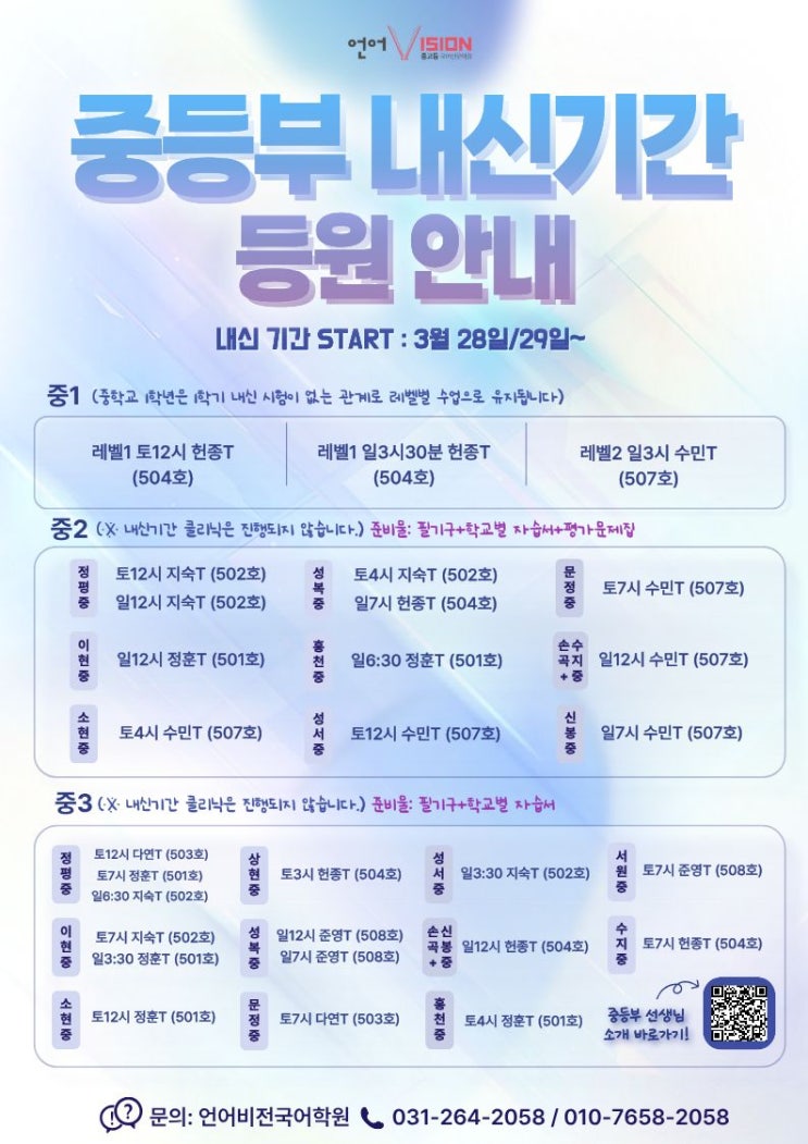 [언어비전] 2026학년도 1학기 중등부 내신개강 안내