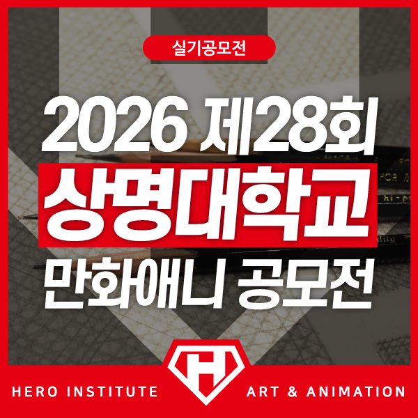 안녕하세요! 프리미엄 미술실기 교육의 중심, 히어로애니에서 힘차게 드립니다! 매 년 새로운 실기 영웅들이 탄생하는 이곳에서 오늘도 여러분의 소중한 꿈을 진심을 다해 응원하며, 오늘은 만화와 애니메이션 전공을 희망하는 학생들을 위한 매우 특별한 소식을 정성껏 준비해 보았습니다! 바로, 2026년 제28회를 맞이한 상명대학교 주최 전국 중·고등학생 만화·애니메이션 공모전 소식인데요! 상명대 천안캠퍼스 디지털만화영상전공에서 주최하는 이번 공모전 대회는 전국 규모단위 작품 공모전의 권위를 자랑할 뿐만 아니라, 전공 교수님들께 직접 실력을 평가받으며 스스로의 가능성을 확인하고 성장할 수 있는 더없이 좋은 기회입니다. 저희....... <img src="https://blogthumb.pstatic.net/MjAyNjAzMTlfMTg4/MDAxNzczOTIxOTg3NTY3.rv4B7o-2pmc7QMw23bFAPPP99A5YNfzIs3Hcpwq682Qg.2o-DqCi7OtXvoqkSOuCUNKq_w-KkYvTJKAwh_TlmmEUg.PNG/0-0.png?type=s3" />