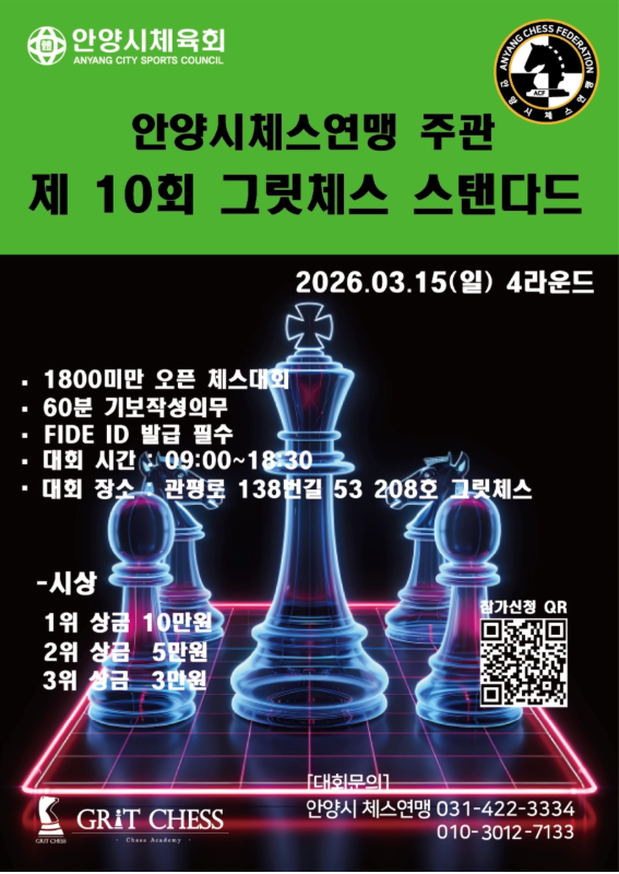 스탠다드 체스대회 / 2025년 3월 15일 안양시 체스대회 제10회 그릿 스탠다드 오픈 체스대회 안내