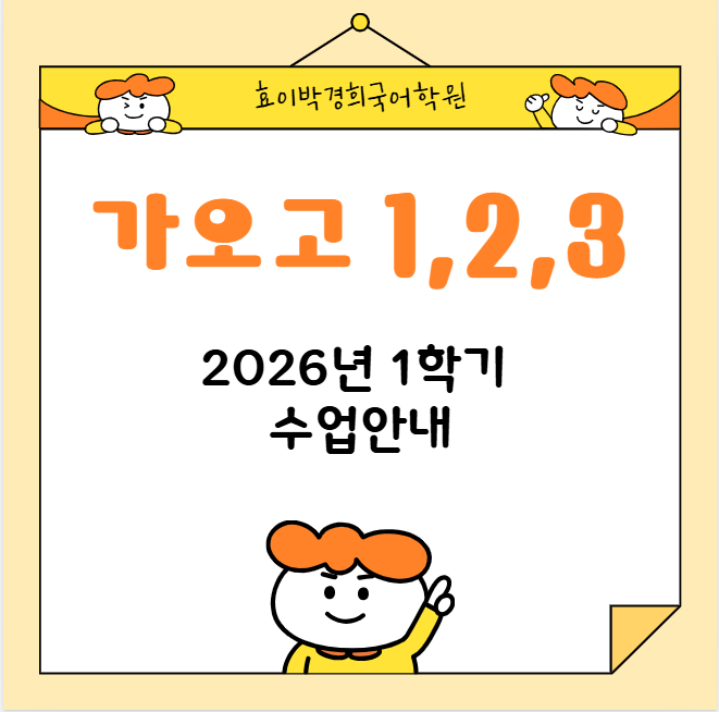 안녕하세요 효이박경희국어학원 입니다~^^ 오늘은 2026년 1학기 가오고등학교 수업 안내를 해드리겠습니다 :) 새학기가 시작되기 전에 미리 준비해주세요! 2026년 1학기도 효이박경희국어학원과 열심히 공부합시다!!! <img src="https://blogthumb.pstatic.net/MjAyNjAyMjNfMTg4/MDAxNzcxODE4ODI0MjQy.Yty0JfPa1YwskDoBl8bE6NM7b7RR2qZ3SwZkl5eVtcYg.l93b9WpILluqR5j6hryIEWuGAUihqDTu4KGfLbUp1Vog.PNG/image.png?type=s3" />
