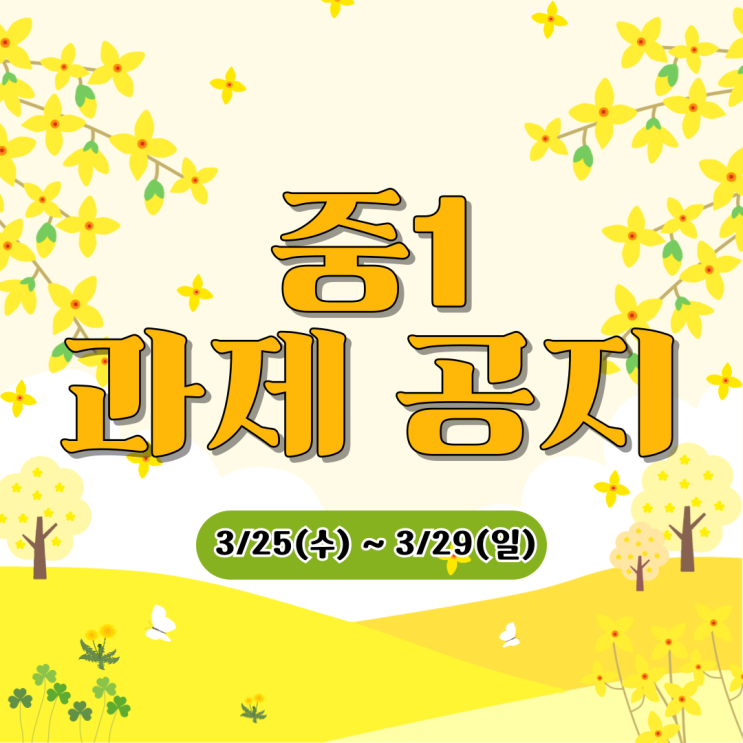 중1 3/25(수) ~ 3/29(일) 과제 공지