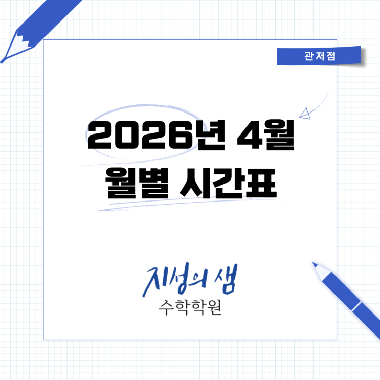 [관저동 지성의샘 수학학원] 2026년 4월 월별 시간표 및 계획