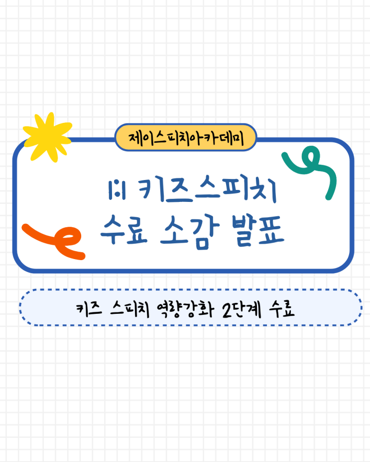 키즈스피치 1:1 과정, 초2 아이의 수료 소감 키즈스피치 역량강화 2단계 수료일이었습니다. 이론 파트 없이 바로 노트를 제공하고 "스피치를 배우고 성장한 점이 있으면 3가지 적어볼까?" 하니, 거침없이 TNPREP 구조화로 본인의 생각을 적어 내려갑니다. “틀린 것 같아도 이제는 자신있게 말해요.” “말도 더듬지 않고, 목소리도 커졌어요!" 처음엔 정답이 아닐까봐 입을 열지 못하던 아이가 이제는 또박또박 차분하게 본인의 생각을 이야기하고, 제스처까지 쓰며 무대에서 당당하게 발표합니다. 그리고 무엇보다 가장 소중한 변화는 '틀려도 말해보는 용기'가 생겼다는 것. 사고가 말랑말랑한 초등 시기! 아이 속도....... <img src="https://blogthumb.pstatic.net/MjAyNjAyMjVfMjY2/MDAxNzcxOTk5MDUzMzg2.sr-G5oJFjwcPNpUEuol5x0w-H07wTXopSqeEtxRnn2gg.K5KAPbqgBEa3tPjvYh-T2AU6lFHlcfm5IAok9ZZP_Egg.PNG/%C5%B0%C1%EE%BD%BA%C7%C7%C4%A1.png?type=s3" />