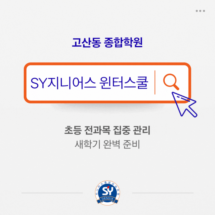 즐겁게 배우고 확실하게 성장하는 학습 습관 고산동 종합학원, 초·중·고 전과목 종합학원 SY지니어스 안녕하세요! 초·중·고 전과목 종합학원 SY지니어스입니다. 겨울방학이 다가오면서 많은 학부모님들께서 자녀의 학습 계획에 대해 고민하고 계실 텐데요. 의정부 고산동 종합학원 SY지니어스에서는 학부모님들의 기대에 부응하고, 학생들의 학습 공백을 최소화하기 위해 2026학년도 겨울방학 윈터스쿨 특강을 준비했습니다! ✅ SY지니어스 윈터스쿨 개강! 이번 겨울방학 윈터스쿨은 고산훈민점과 중고등 몰입관에서 진행되며, 민락점 재원생도 함께 수강이 가능합니다. 짧지만 중요한 겨울방학 기간 동안, 아이의 전과목 실력을 끌어올릴 수....... <img src="https://blogthumb.pstatic.net/MjAyNTEyMzBfNjMg/MDAxNzY3MDU5MjY1MzMz.mWuCi4ozpgMimvxmUdwOaKqhKIzG1vYWKULXmegumnwg.0XKWN_5JijpNwSRuqqY2IxNfDKfIgfTYysywWwevRe4g.GIF/1.gif?type=s3" />