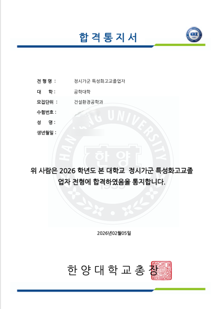 안양공업고에서 시작해 수능으로 한양대 건설환경공학과에 합격하기까지 합격 발표 날이었다. 홈페이지를 열어 두고 한동안 마우스를 잡은 채로 움직이지 못했다. 수험번호를 입력하고 결과를 확인했다. 다시 한 번 확인했다. 그리고 잠시 뒤 걸려온 전화. “선생님, 합격했습니다.” 전화를 끊고 나니 기쁜 마음보다 먼저 처음 만났던 날의 모습이 떠올랐다. 교복이 아직 어색했던 예비고1. 특성화고에 진학하지만 대학에 가고 싶다고, 가능하다면 공학계열을 목표로 해보고 싶다고 말하던 학생이었다. 방법은 잘 모르겠지만 해보고 싶다고 했다. 그래서 같이 계산을 시작했다. 취업이 자연스러운 분위기 속에서 세운 다른 계획 안양공업고 드론....... <img src="https://blogthumb.pstatic.net/MjAyNjAyMDlfMyAg/MDAxNzcwNjMxNjY3OTUw.KToV9y68iPMbhmH7Oms3f5tsyxgJ5G7vnQuRElOTVtEg.3nanZllZQNvaOBmSpinSTzxM3w_1pSxSzD-RROh0g1Mg.PNG/%C1%B6%C0%CC%C1%D8%C7%D1%BE%E7%B4%EB%C7%D5%B0%DD%C1%F5.png?type=s3" />