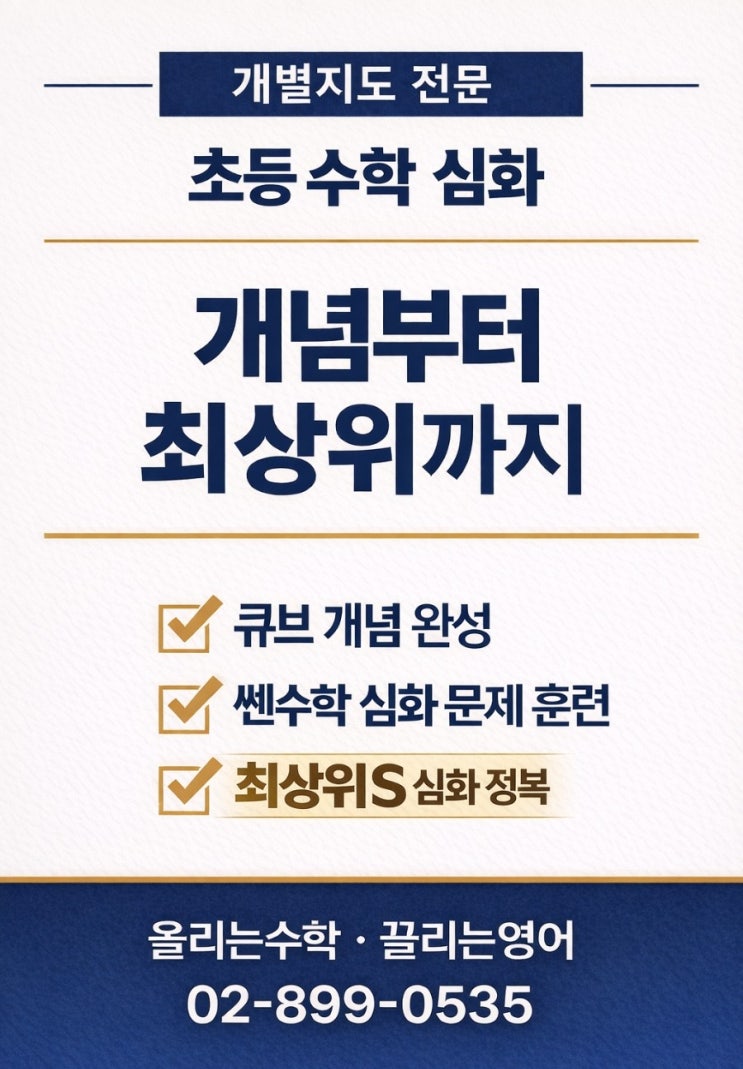 #황소수학 아니더라도 초등 심화 얼마든지 공부할 수 있습니다! 중위권 친구들도 초등 심화 반드시 경험해야 합니다. 경시대회 준비 도움 받을 수 있습니다! 상위권 친구들 더 잘하고 싶다면 경시대회 준비로 한 단계 높은 수학의 세계를 경험할 수 있습니다. 대학생 선생님이 아닌 베테랑 선생님의 섬세한 설명 차원이 다른 이해도를 경험 하세요! 하안동 수학 과외를 찾고 계신가요? 대형의 학원의 단점, 개인 과외의 아쉬운 점을 모두 보완 한 소수정예 개별지도 전문 학원 올리는 수학. #가림초수학 #연서초수학 #하안초수학 #철산초수학 <img src="https://blogthumb.pstatic.net/MjAyNjAyMTFfMTgz/MDAxNzcwODE0MjU5MDAw.GIrpgaSh5EE3THvh1U07UckE9D0C8RERVqvyNWLBFiMg.J4KmhNuggPcX8-bo0D_ty3IfTjAjW8A6r55-g4IWiJ0g.JPEG/1770814258550.jpg?type=s3" />