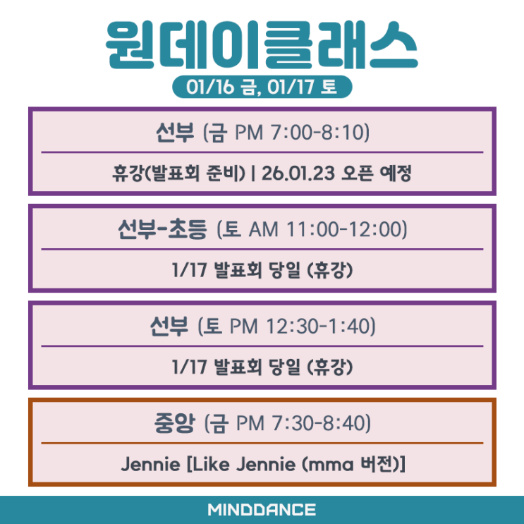 1월 둘째주 [금/토요일 댄스 원데이클래스] | 제니, 라이크제니 | 안산 중앙동, 선부동 마인드 댄스학원, 안산댄스학원, 시흥댄스학원