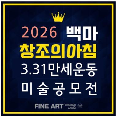 애니, 만화, 웹툰 백마창조의아침에서 전하는 2026실기대회 & 공모전 안녕하세요! 풍동미술학원 백마창조의아침입니다. 오늘 풍동미술학원에서 전해드릴 공모전 소식은 2026 군포 3.31 만세운동 기념 미술·백일장 전국 공모전 소식입니다! 2026 군포 3.31 만세운동 기념 미술·백일장 전국 공모전 [공모요강] 접수기간 2026년 2월 13일(금) ~ 3월 13일(금) *마감일 18:00까지 도착분에 한함 참가자격 전국 유치부, 초중고학생 (학교밖 청소년 포함) 공모주제 3.31 만세운동 그날의 함성과 정신을 담은 자유주제 [미술 응모접수] 우편접수 경기도 군포시 고산로 599 군포문화예술회관 2층 군포예총 (15820) 방문접수 경기도 군포시 고산로 599 ....... <img src="https://blogthumb.pstatic.net/MjAyNjAyMjNfMjEx/MDAxNzcxODA4MjQzNTQw.lJ0aOL2gbzA-QYc3Fngm9W5KPkxaIEAu9uTcAWVbB1wg.KZZLBSHLwChTn_hvYC2rbOUxOs1C2IaHKIUtI2aXUywg.JPEG/%B9%E9%B8%B6%C3%A2%C1%B6%C0%C7%BE%C6%C4%A7_2026_%B1%BA%C6%F7_%B8%B8%BC%BC%BF%EE%B5%BF_%B1%E2%B3%E4_%B0%F8%B8%F0%C0%FC.jpg?type=s3" />