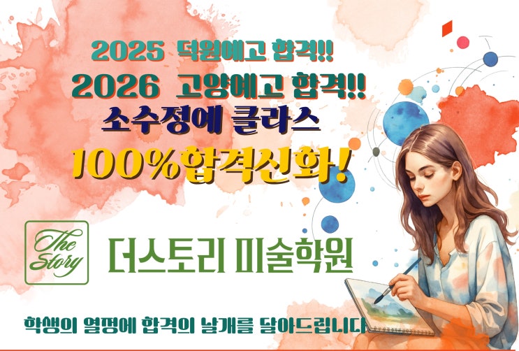 더스토리의 특화된 예고입시 클라스를 안내해 드립니다~~ 해마다 입시생 100%의 합격을 이끈 원장님들의 직강~!!!! 변화하는 입시에 맞춘 꼼꼼하고 냉철한 분석과 연 2회 교수평가~!!!! 원하는 예고의 꿈이 현실이 됩니다!! 차별화된 지도. 학생과 나란히 진지한 즐거움 일산입시미술의 중심. 더스토리 미술학원 문의) 031-916-1555 <img src="https://blogthumb.pstatic.net/MjAyNjAyMjRfNTUg/MDAxNzcxOTAzMDE1NjQz.caLhjVMEQ6TbH487WzoDqfNpd6ADzjVe0D0ZUDW2eh0g.L_QK5vKaY0QWgwXyNz0TvRlOS3hLTUFL2fUQefK_j7wg.JPEG/KakaoTalk_20260224_121159330.jpg?type=s3" />