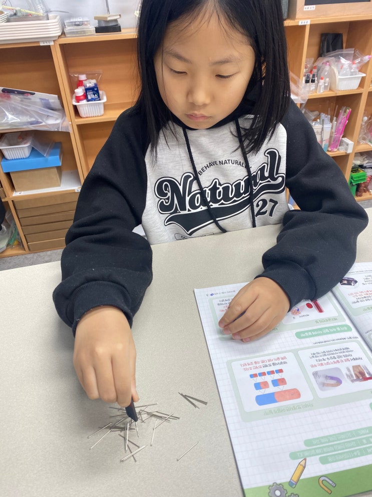 아톰2(예비4학년) : 자석토네이도 자석은 철과 같은 금속을 끌어당기는 성질(자성)을 가진 물체로 항상 N극과 S극이 동시에 존재합니다. 자석의 다른 극(N-S)끼리는 서로 끌어당기는 인력이 작용하고, 같은 극(N-N, S-S)끼리는 서로 밀어내는 척력이 작용합니다. 원형모터에 네오디뮴 자석을 장착하여 회전시켰을때 자기장의 힘으로 회전하는 물체를 확인하기 위해 투명컵에 물을 채우고 금속 핀을 넣었습니다. 자석이 회전하면서 컵 안에 있던 금속핀이 회전하면서 소용돌이가 생기는 것을 관찰 해 보았습니다. 퀀텀1(예비5학년) : 퇴적암 모형 만들기 물이 운반한 자갈, 모래, 진흙 등의 퇴적물이 국어져 만들어진 암석을 퇴적암이라고 합니다....... <img src="https://blogthumb.pstatic.net/MjAyNjAyMDhfMjMx/MDAxNzcwNTE5ODY5MDU0.UlcXGTjoorM3ChVEBn8OcWTTzUHBqZbBn50KXjNlI4og.cB0yY5kmQBglSeUFDVNFcxztubhAQAGVwyb30inRqqog.JPEG/KakaoTalk_20260208_100643572.jpg?type=s3" />
