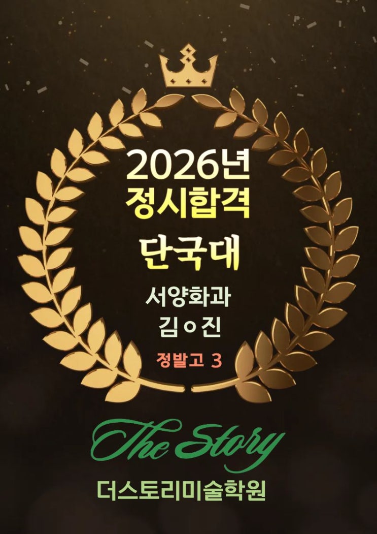 2026학년 정시 합격 단국대 서양화~!!!! 단국대학교 서양화 합격을 축하합니다~~!!!! 그동안 수고 많았습니다~!!!^^ 더스토리의 합격행진은 계속됩니다~!! 학생과 나란히. 진지한 즐거움. 일산미술교육의 중심, 더스토리 미술학원 <img src="https://blogthumb.pstatic.net/MjAyNjAyMTBfMjE1/MDAxNzcwNzE1NTg4MDEw.FQMIjk8zFN6Z16tBOezODrYFjbuHjFSoh7yu0MXodsog.KofiFW97GQPCL2gyNnXkOzY-O39JYj0d7z_FlpFmqGgg.JPEG/%BC%BC%C1%F8.jpg?type=s3" />