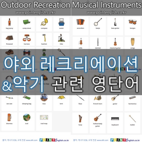 Outdoor Recreation 야외 레크리에이션, Musical Instruments 악기 종류 영단어 - 무료 이미지 제공
