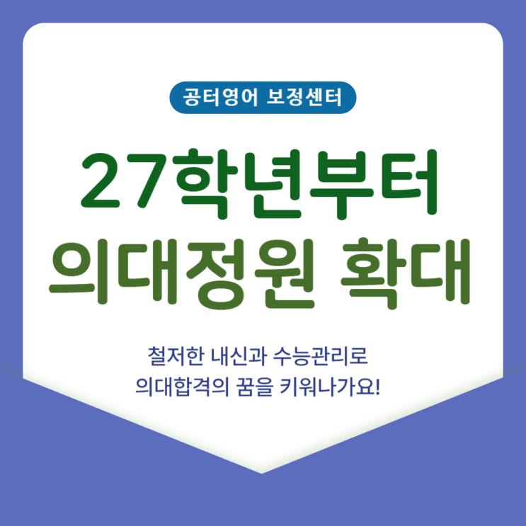 의대정원확대 27학년부터 시작됩니다! 기회 잡으세요!